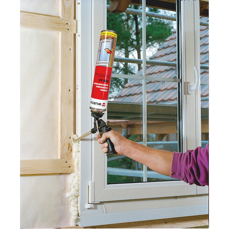 Mit dem 1K-Pistolenschaum gelingt Ihnen sauberes und kontrolliertes Hinterfüllen von Hohlräumen, isolierendes Abdichten von Anschlussfugen (Fensterbau, Außentüren), Ausschäumen von kleinen Mauerdurchbrüchen und anderen Hohlräumen.