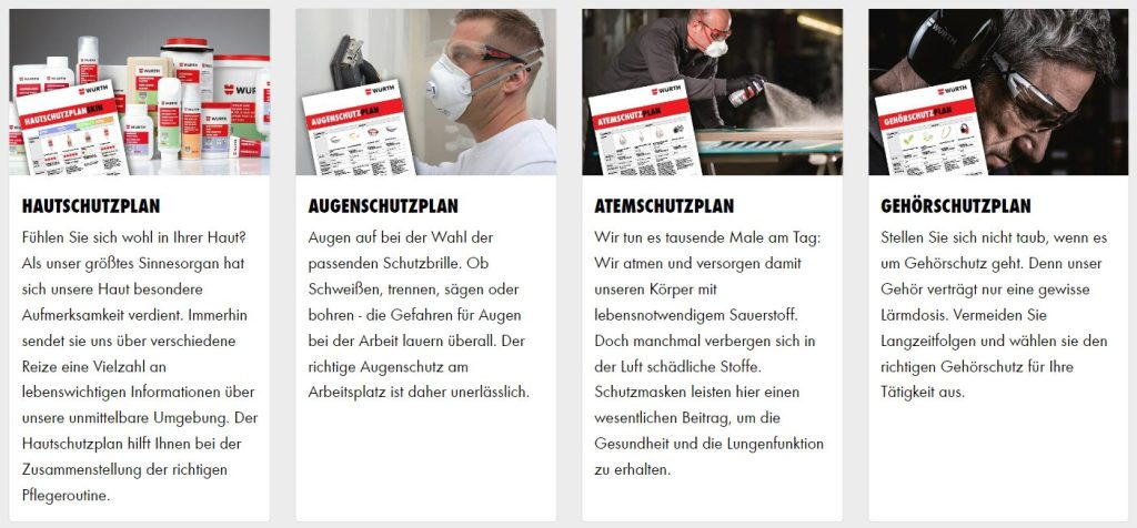 Mit dem Service „PSA-Management“ bietet Würth auf Basis langjährigen Know-hows allen Handwerks- und Industrieunternehmen eine wertvolle Unterstützung bei der Planung unternehmensspezifischer Arbeitsschutzmaßnahmen und bei der Auswahl der geeigneten PSA-Artikel.